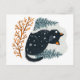 Postal Festiva Nevada de invierno acogedora para gato negro