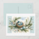Postal Festiva Nido de pájaro azul con ornamentos en minas de inv