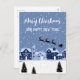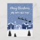 Nieve azul con santa y reno Tarjeta postal de vacaciones .