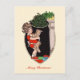 La niña de Akewl con un vestido rojo está poniendo las botas viejas listas para Santa.