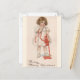 Hermosa postal de época. Dulce niñita victoriana con cinta de Navidades y campanas "Una Feliz Navidad". rosa rosa pálido de bonito.