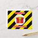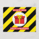 Ilustracion de una simple caja de regalo roja con el texto "No abrir hasta Navidades", y fondo rayado negro y amarillo. Los regalos son la mejor manera de sorprender a tu familia y amigos. Este diseño es bueno para ser impreso en un pegatina o envoltura de regalo para los regalos puestos debajo del árbol de Navidad.