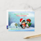 Dos lindos pingüinos posan antes de que su pequeño iglú adornado con un Navidad coronara en este alegre saludo de vacaciones. Si te has mudado a un nuevo hogar, desear a tus amigos y familia una Feliz Navidad y informarles de tu nueva dirección al mismo tiempo.