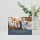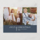 Este moderno Navidad de fotos color azul marino de moda de noticias postal de vacaciones es el elegante y perfecto saludo de vacaciones. Este sencillo diseño de boho presenta una caligrafía clásica sofisticada en un rústico azul marino oscuro y blanco. Personaliza tu postal con 2 fotos, tu apellido, nombres y año. Incluir un año opcional en revisión o boletín familiar en la parte posterior.