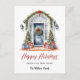 Celebra la alegría de la temporada y la emoción de un nuevo capítulo en tu vida con nuestra elegante postal de Invitación Moderna Navidades en Movimiento. Esta encantadora tarjeta cuenta con un bonito ilustracion acuático pintado a mano de una puerta principal adornada con decoraciones festivas, lo que convierte el lugar perfecto para un mensaje cálido y acogedor. El elegante guión de la tipografía dice "Felices vacaciones desde nuestro nuevo hogar", agregando un toque de alegría navideña clásica. El nombre de su familia aparece de forma destacada en la parte delantera, lo que lo hace único suyo. Para hacerlo aún más personal, puedes agregar tu propia foto y un mensaje sincero en la parte de atrás, compartiendo la alegría de tu nuevo hogar con amigos y seres queridos. Esta postal es una manera maravillosa de enviar saludos de vacaciones mientras anuncia su movimiento de una manera elegante y memorable.