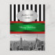 NY City Skyline ESB BW Colección de Invitaciones a Banda Blanca y Negra - Navidades Postcard Personalizables Invitaciones y accesorios con una icónica vista del perfil de la ciudad de Nueva York desde la parte superior del 30 Rockefeller Center, con una foto en blanco y negro del Empire State Building, el bajo Manhattan incluido el World Trade Center. También tienen un fondo de rayas negras y blancas, una cinta roja y verde y una etiqueta de gradiente blanco con la elección de un marco de perlas de aspecto plateado o dorado. (Nota: algunos accesorios de acompañamiento de coordinación pueden no tener los elementos de foto o diseño adicionales mencionados anteriormente.) Este producto forma parte de un conjunto de diseños de correspondencia que son de fácil personalizable para muchas ocasiones y eventos. Si necesita tarjetas RSVP separadas que coincidan, notas de agradecimiento, sellos, imanes u otros accesorios, por favor revise nuestros otros listados. Si no ves un producto que te interese, o te gustaría ver este diseño en diferentes colores, con elementos de otros diseños, o con diferentes fotos de NYCisMyMuse que ves en nuestra tienda, por favor contáctanos y nos alegraremos de personalizar de un diseño para ti! Tenga en cuenta que se trata de un diseño gráfico y que no contiene telas, metales, gemas ni bordados reales. Todos los derechos reservados