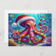 Esta tarjeta de Navidades única incluye un adorable pulpo vestido para la temporada de vacaciones. El pulpo se muestra en un estilo caprichoso y lúdico, con un sombrero de Papá Noel y rodeado de decoraciones festivas como adornos, dulces y luces brillantes envueltas en los brazos. Cada tentáculo contiene una pequeña sorpresa de vacaciones, desde cajas de regalo hasta copos de nieve, añadiendo encanto y creatividad al diseño. Esta tarjeta es perfecta para extender la alegría de las vacaciones con un toque divertido y no convencional, ideal para los amantes del océano o para todo aquel que aprecie un peculiar y delicioso saludo de Navidades.