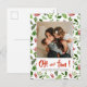Postal Festiva Oh Qué Diversión Script | Foto de Hoja de Acebo y