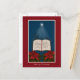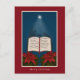 Wish someone special a Merry Christmas with this religious holiday card featuring a nativity in silhouette and an open Bible showing the verses Luke 2:12-14. Two red poinsettias appear in the two bottom corners of the image while a bright star casts a silvery glow over the Christ child. The background of the image is a deep blue and the card is finished with a dark red border. The poinsettias and basic book design are from Za Za Scrap and Tubes at Digital Scrap Designs.