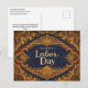 Este diseño lujoso del Día del Trabajo se inspira en textiles ornamentales clásicos y encuadernaciones vintage. Puesto en un fondo azul marino intenso, intrincados patrones florales y de filigrana en dorado, verde azulado y rojo cálido enmarcan el mensaje "Feliz Día del Trabajo" en tipografía serif refinada. La composición simétrica, parecida a un tapiz, transmite artesanía, tradición y belleza duradera, honrando la habilidad y arte detrás del trabajo significativo. Con su rica paleta de colores y detalles elegantes, esta tarjeta tiene una calidad atemporal y de reliquia familiar.