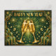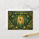 Postal Festiva Oro Esmeralda Art Déco Celebración de Champán