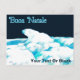 Una imagen de tono azul, algo estilizada, de un oso polar (Ursus maritimus) descansando sobre el paquete de hielo polar en una noche de invierno oscura, iluminada por la luna. El texto italiano que dice "Buon Natale" aparece en azul brillante y blanco. Añade tu propio texto adicional.
