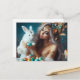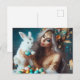 Postal Festiva Ostara diosa con el conejo de Pascua