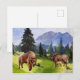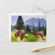 Postal Festiva Paisaje al Acuarela de Bisonte Búfalo