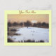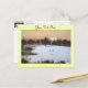 Esta pintoresca postal de arte de la escena de nieve tiene una foto de un pequeño paisaje cubierto de nieve. En el primer plano de la pintoresca imagen hay trozos de hierbas cubiertas de nieve y arbustos. En el fondo, las ramas de invierno desnudas de los árboles lejanos están cubiertas de nieve estacional y una gruesa capa de nieve blanca y suave recién caída cubre las llanuras de hierba. Esta pequeña pintura color agua evoca el día frío de diciembre y se ve realmente especial en esta tarjeta postal única de Navidades. El título de la pintura original es "Nieve sobre las llanuras". Esta es una postal de personalizable, puedes personalizarla con tu propio texto.