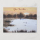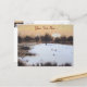 Esta pintoresca postal de arte de la escena de nieve tiene una foto de un pequeño paisaje cubierto de nieve. En el primer plano de la pintoresca imagen hay trozos de hierbas cubiertas de nieve y arbustos. En el fondo, las ramas de invierno desnudas de los árboles lejanos están cubiertas de nieve estacional y una gruesa capa de nieve blanca y suave recién caída cubre las llanuras de hierba. Esta pequeña pintura color agua evoca el día frío de diciembre y se ve realmente especial en esta tarjeta postal única de Navidades. El título de la pintura original es "Nieve sobre las llanuras". Esta es una postal de personalizable, puedes personalizarla con tu propio texto.