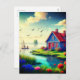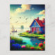 Postal Festiva Paisaje natural con cabaña y lago-434567