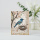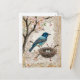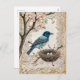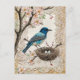 Postal Festiva Pájaro azul en flores con nido
