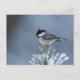 Postal Festiva Pájaro invernal posado en rama de pino helada