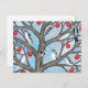 Postal Festiva pájaros carpinteros en el árbol de vidrio manchado