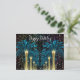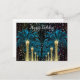 Las fantásticas palmeras con luces, temporada festiva, nieve y estrellas caen sobre el fondo negro.