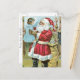Vintage ilustracion de la tarjeta navideña de Santa con niño.