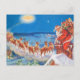 ¡Papá Noel y su reno poderoso para arriba en un tejado Nevado alrededor a ir abajo de la chimenea!