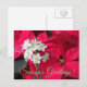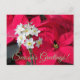 Tarjeta postal de Navidad que presenta una imagen fotográfica de brillantes flores de pascua rojas y hermosas flores de papel blanco. ¡Un diseño festivo y floral para las fiestas! Puede personalizar su tarjeta postal para agregar texto en el reverso de la tarjeta, como el nombre de la empresa o cualquier otro texto que desee. Seleccione entre estilo mate o brillante.