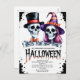 Añade un toque de emoción a tu temporada espeluznante con esta divertida invitación a una fiesta de Halloween que presenta a una encantadora pareja de esqueletos vestidos con trajes festivos. Perfecta para fiestas de disfraces, reuniones en casas embrujadas o celebraciones de noche de Halloween. Este diseño llamativo trae un ambiente divertido y espeluznante que emocionará a tus invitados. Ideal para eventos personales y temáticos.