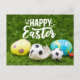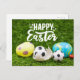 Postal Festiva Pascua de fútbol con bolas y huevos
