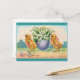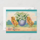 Esta postal dulce presenta un diseño vintage de Pascua, de dos pollitos que llevan un huevo lleno de flores, con el texto "Saludos de Pascua". Los colores del borde se pueden personalizar para que se ajusten a sus necesidades.