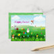 Pollo de ternera, conejillos, huevos de pascua, pájaros y mariposas en la pradera de primavera deseando "Feliz Pascua" Texto y color de fondo (atrás) son totalmente personalizables, así como prefieres.
