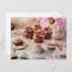 pastelitos coronados con batidos de chocolate aterciopelado y adornados con perlas comestibles. Pastel de cumpleaños