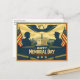 This Memorial Day design evokes the power and solemnity of a historic civic poster, honoring service across generations. Two silhouetted service members—one in a World War–era helmet and the other in a dress uniform—face one another in quiet recognition, representing continuity of duty and sacrifice. Between them rises a monumental memorial with an obelisk and classical structures, symbolizing national remembrance. Above, a broad-winged eagle soars through radiant sunburst rays, flanked by American flags that frame the composition. Laurel branches and stars reinforce themes of honor, valor, and eternal gratitude. Rendered in heritage blues, golds, and muted reds, the artwork conveys dignity, unity, and reverence.