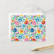 Este diseño de arte folclórico presenta un patrón floral de colores vivos.