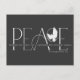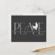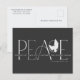 Estas postales de felicitación navideña de 5.6" x 4.25" muestran el saludo "Paz" en grandes letras en tonos grises sobre un fondo negro con el mensaje "Te deseo paz, amor y alegría esta temporada de fiestas". Simplemente agrega tu(s) nombre(s) y año(s). El reverso tiene marcadores de posición para el nombre y la dirección del remitente.