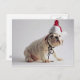 Postal Festiva Perrito del bulldog que lleva el gorra de Santa