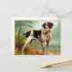 Perro cazador con pájaro en la boca. Dibujo vintage colorido. Recuperador con piel de cazador colorida