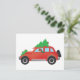 Postal Festiva Perro de Basenji conduciendo auto con árbol de Nav