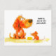 Postal Festiva Perro de cómic en acuarela y ratón con queso