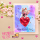 Postal Festiva Perro Día de San Valentín de Bulldog azul morado