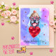 Postal Festiva Perro El día de San Valentín de Pitbull gris morad
