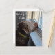 Recuperador de la Bahía de Chesapeake marrón rojizo con la nariz mojada pegada a la ventana esperando a Santa Claus.
