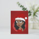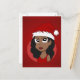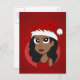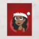 Diseño con un ilustracion de hermosa joven afroamericana con el gorra de Santa Claus, Navidades diseño de vacaciones en un fondo rojo, por Radka Kavalcova