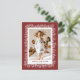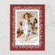 Fotografía roja personalizado Happy Holidays con ramas de pino y nieve. Personaliza fácilmente en línea.