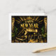 Este llamativo diseño de Año Nuevo captura el glamour de un salón vintage Art Deco a medianoche. Un gran piano pulido toma el centro del escenario bajo rayos radiantes de sol dorado, con la silueta de un pianista que agrega intriga dramática. Candeliers de cristal, columnas negras y doradas elegantes, y acentos de palmeras lujuriantes enmarcan la escena, evocando la elegancia de una celebración de los felices años veinte. Una lámpara de mesa brillante y una copa de cóctel mejoran la atmósfera íntima y sofisticada, mientras que la letra dorada en negrita corona la composición. Tonos negros ricos y dorados metálicos crean un diseño lujoso y de celebración perfecto para recibir el año nuevo con estilo atemporal.