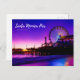 El emblemático muelle de Santa Mónica al atardecer, se ilumina junto a la calle.