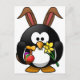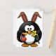 Pingüino divertido de Pascua del dibujo animado con los huevos y la flor.