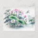 Postal Festiva Pintado de tinta asiática de Lotus y Dragonflies