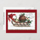 Postal Festiva Plum Pudding en Sleigh Vintage Christmas